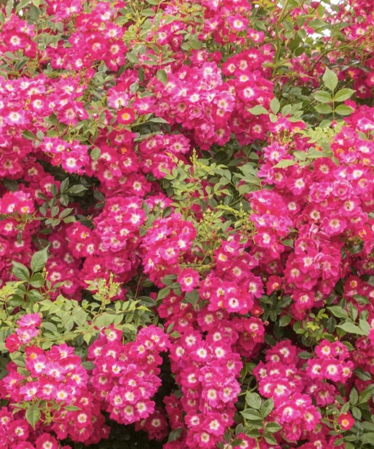 Den ganzen Sommer über entfaltet die Kletterrose Libertas® immer wieder neue Blüten und erfreut damit durchgängig bis in den Spätherbst hinein. Die Blüten der Kletterrose Libertas® stehen in reichen Dolden zusammen. Jede der in hunderten kleinen, ungefüllten, schalenförmigen Einzelblüten misst 3 – 4 cm im Durchmesser. Aus dem kräftigen Rosa ihrer Blütenblätter schimmert die Blütenmitte hell hervor. Bienen und Schmetterlinge werden von der üppigen Blütenpracht angelockt und mit Nektar belohnt, daher gehört diese tolle Sorte zu unserer Serie der „Bienenlieblinge“.